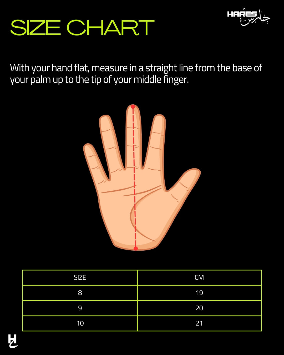 - Measure from the bottom of your wrist to the tip of your middle finger